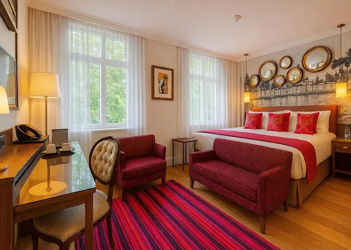 Other amenities include a seating area and a flat-screen TV with satellite channels in the rooms. A tub, a separate toilet, and a shower are also included in the bathrooms.